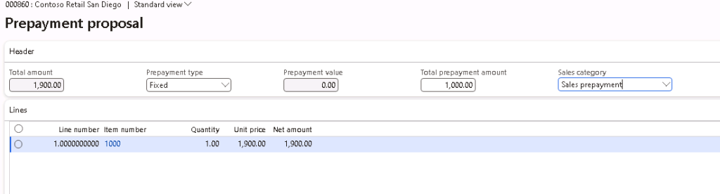 - Fixed – The Total prepayment amount field is enabled and you’ll enter the amount required for prepayment. Note that you will not be allowed to enter the prepayment amount that is larger than the total order amount.