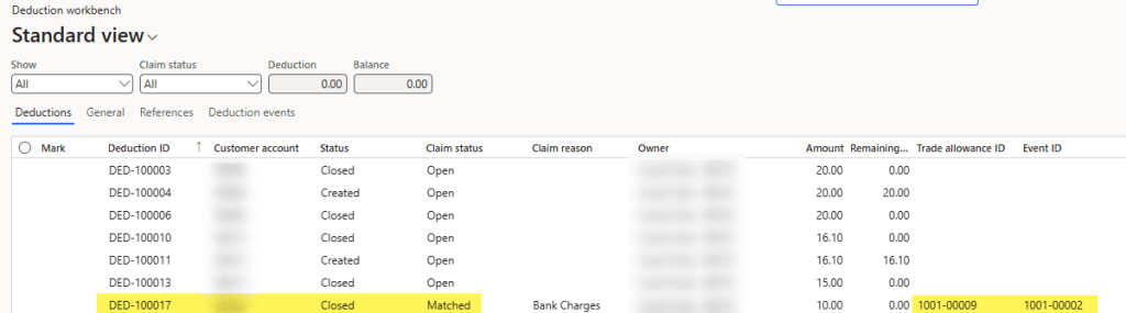 The matched deduction will now have a status of “Closed” and a claim status of “Matched”.