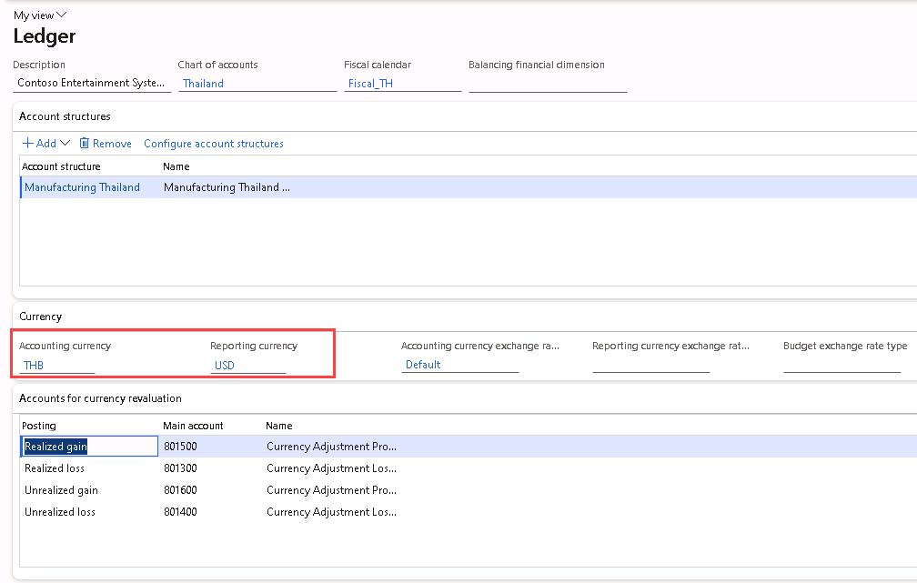 Legal entity THMF has Accounting currency = THB and Reporting currency = USD.