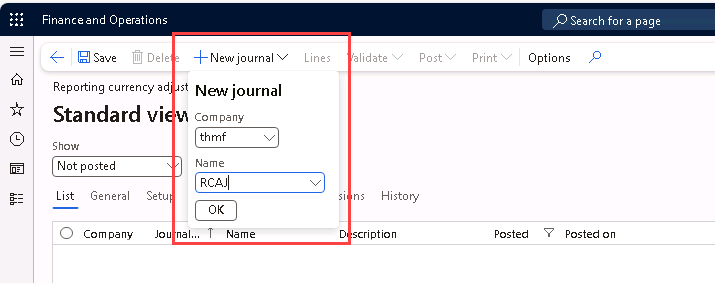 Then, navigate to General ledger > Journal entries > Reporting currency adjustment journals.