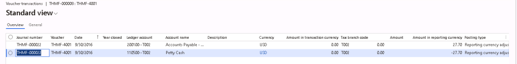 The voucher posted will only affect the amount on the reporting currency, with 0.00 posted to transaction and accounting currency amount.