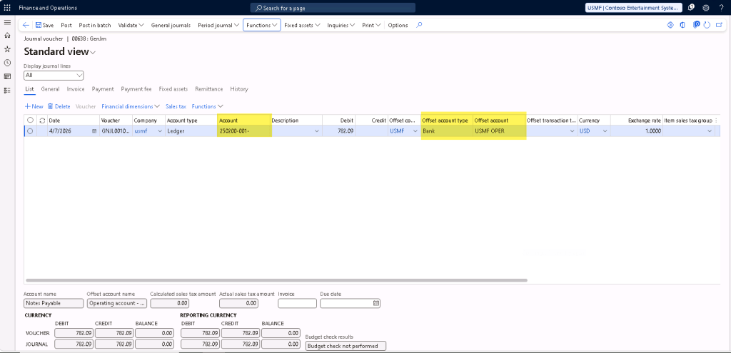The journal line will be created to clear the bridged payment from the bridging account and offset it against the bank account that was setup in the bridging method of payment earlier.
