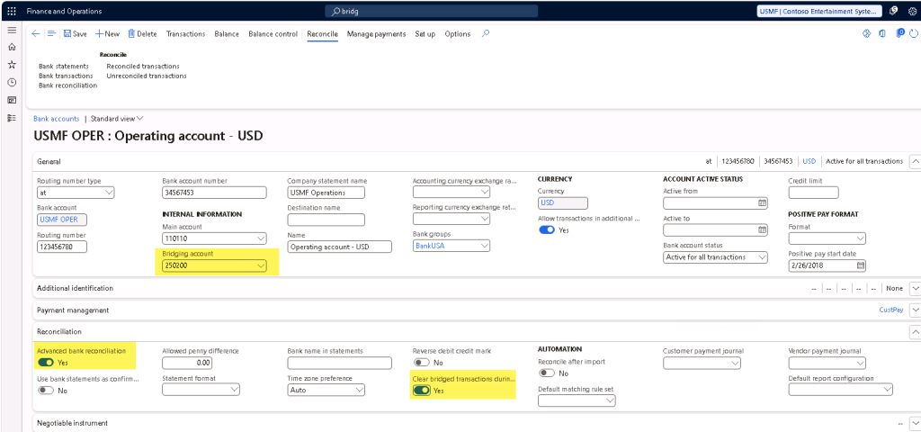 It is also possible to automatically clear the bridged transactions without needing a user to manually retrieve and post the general journal to clear the transaction. To do so, there is a feature called “Automatic clear bridged transactions through advanced bank reconciliation” which should have already been on by default.